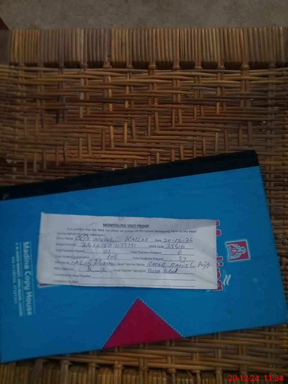 | Attendance Register | Head Teacher | MEA with School | Visit Proof |