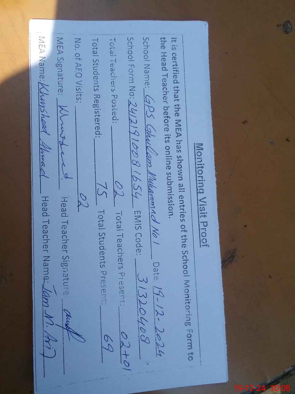 | EMIS Code: 31320408 | Name of School: GPS BASTI GHULAM MUHAMMAD NO.1 | |||