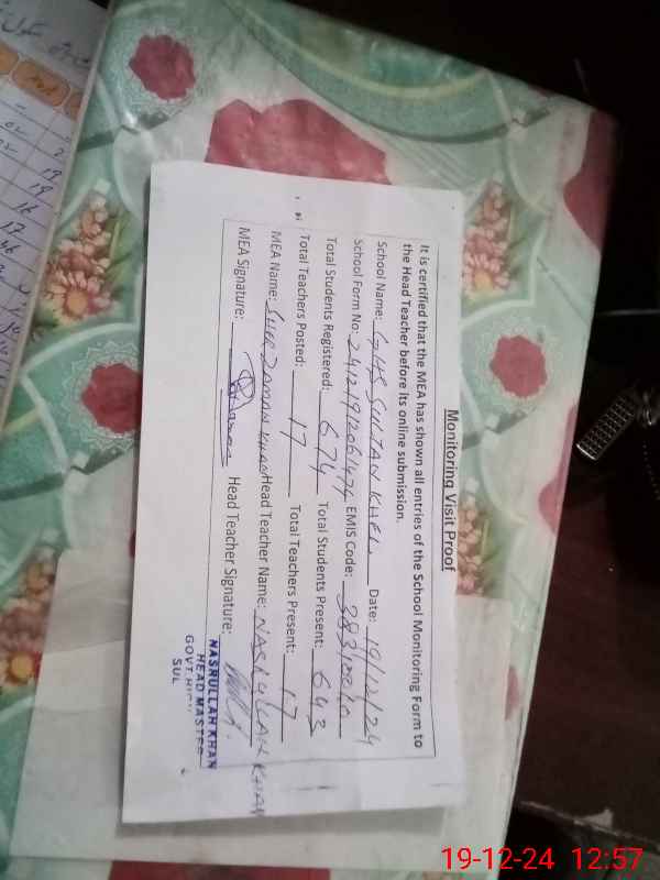 | EMIS Code: 38310010 | Name of School: GHS SULTAN KHEL | |||