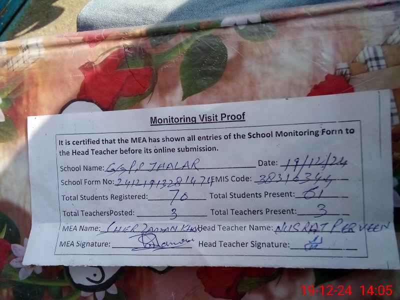 | EMIS Code: 38310344 | Name of School: GGPS JHALLAR | |||