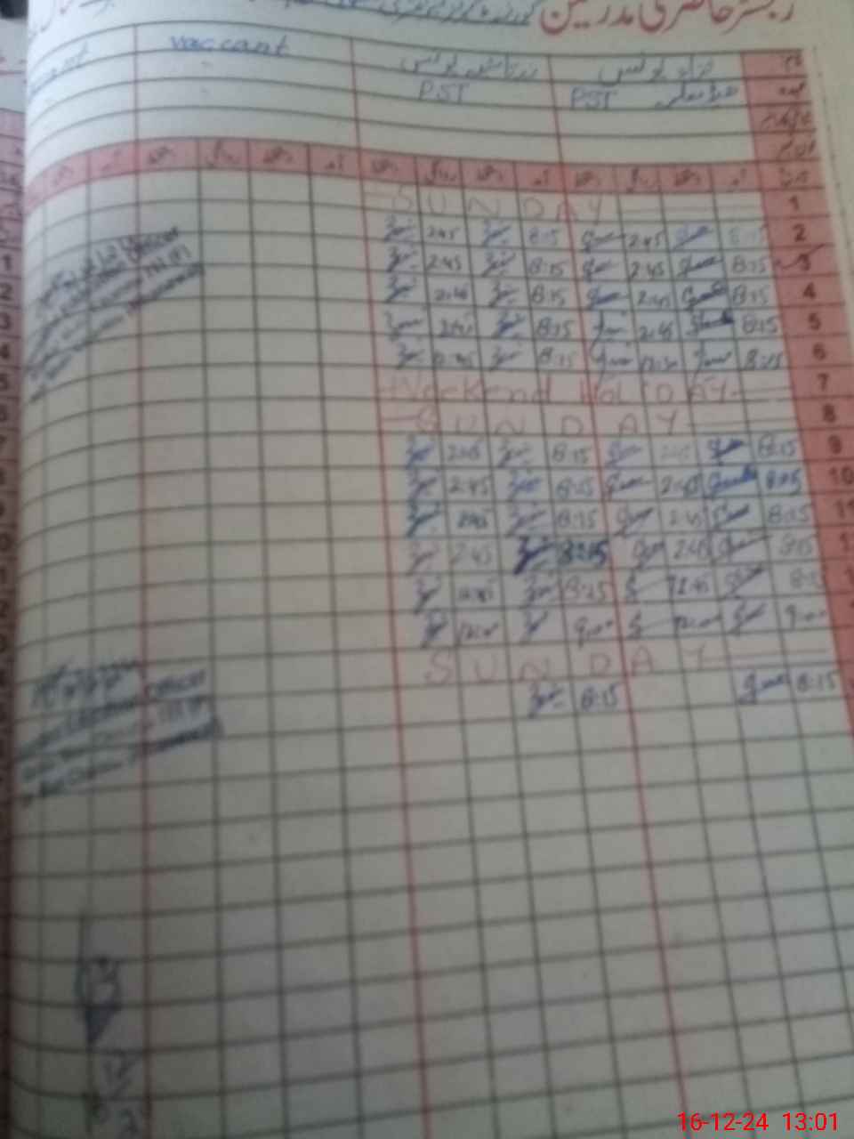 | CNIC | Full Name | Designation | R/C | Absence During Last Calender Month |
