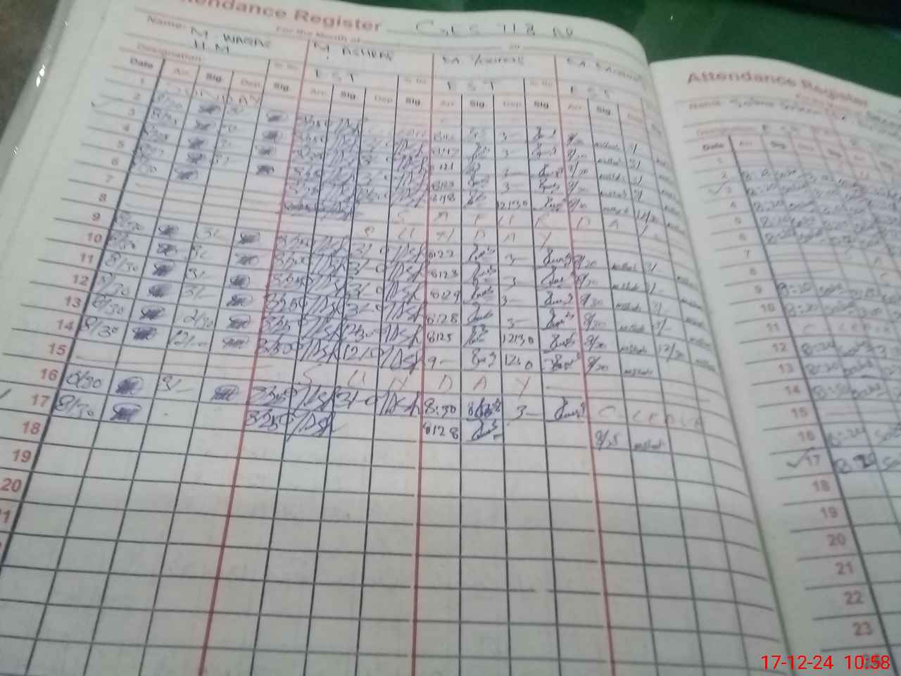 | CNIC | Full Name | Designation | R/C | Absence During Last Calender Month |