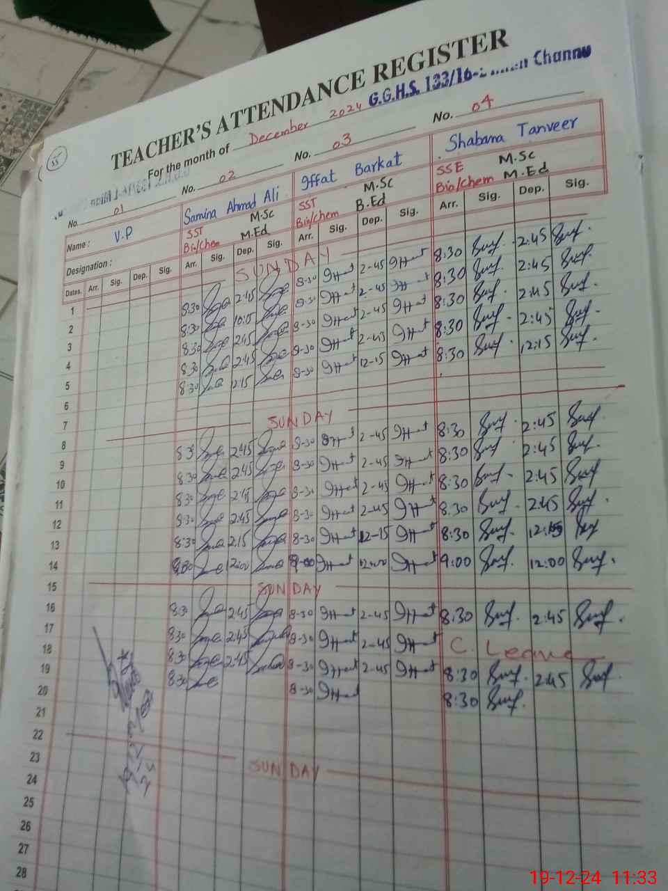 | EMIS Code: 36430041 | Name of School: GGHS 133/16-L, MIAN CHANNU | |||