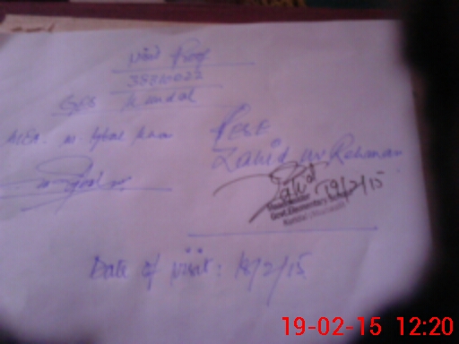 | School Visited by School Health & Nutrition Supervisor (No. of Visits) | 3 | Name1: | Adad Khan | Name2: | |