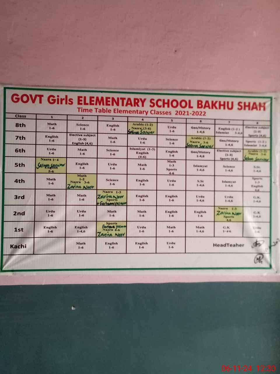 | Name: AB**** PA**** Designation: (School Headmaster's/Headmistress's) S.S.T.(Arts) Phone/Cell Number: 03**** |