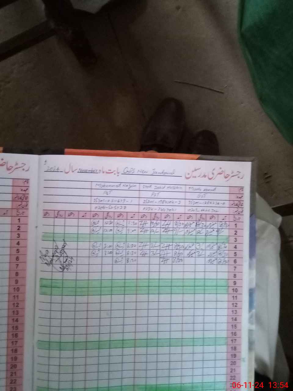 | CNIC | Full Name | Designation | R/C | Absence During Last Calender Month |