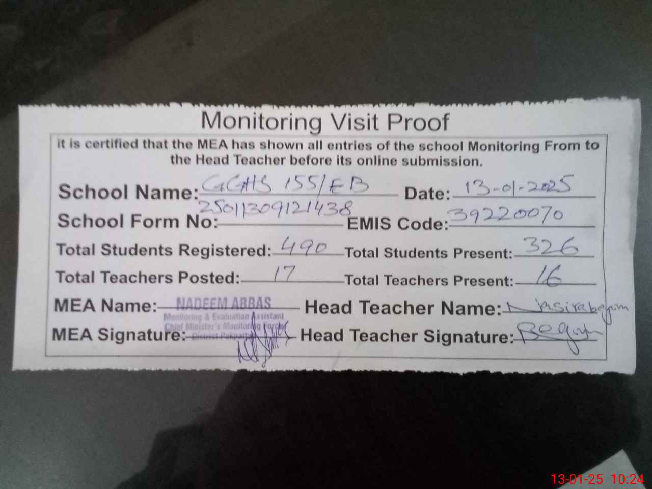 | EMIS Code: 39220070 | Name of School: GGHS 155 EB | |||