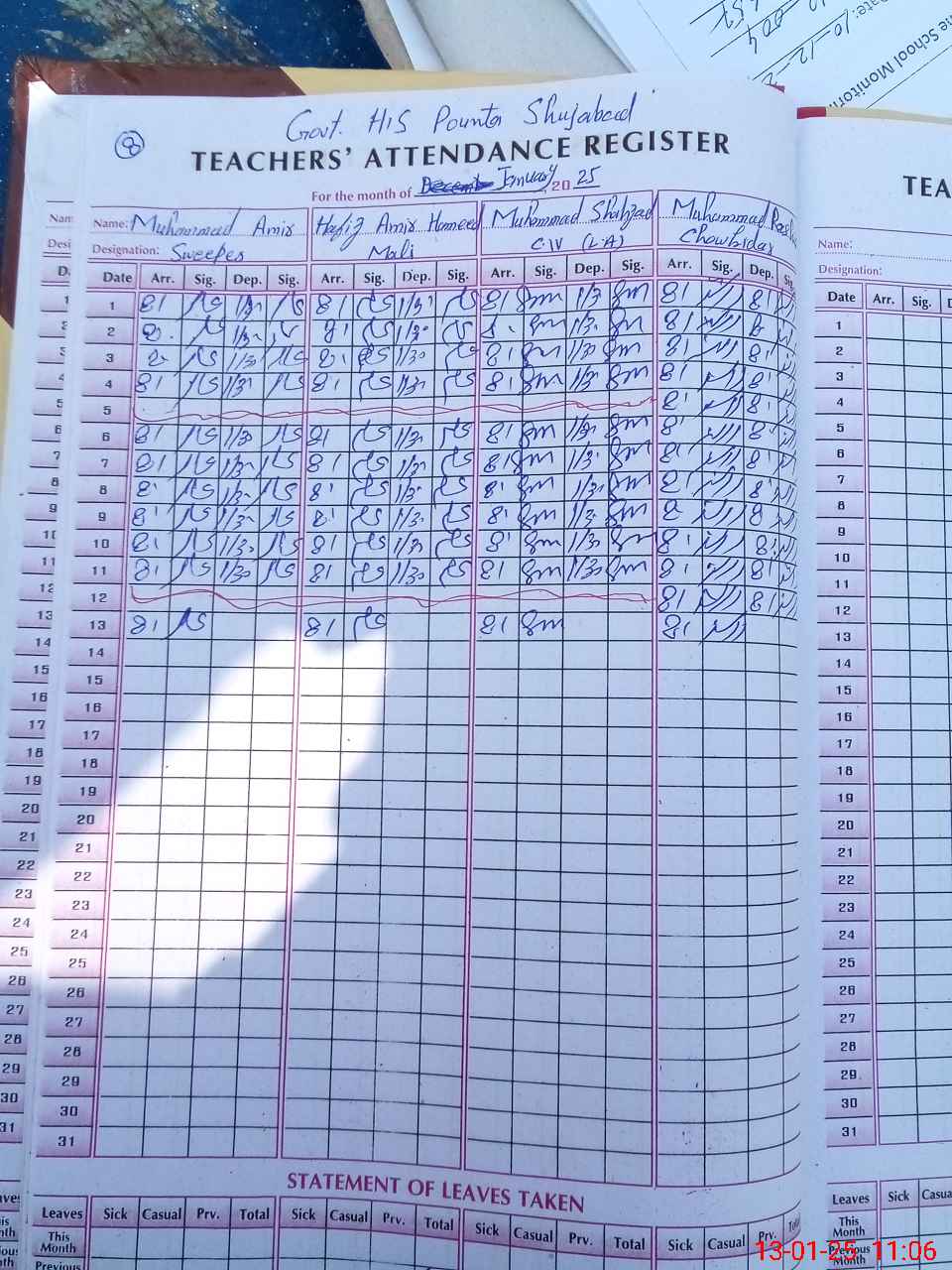 | CNIC | Full Name | Designation | R/C | Absence During Last Calender Month |