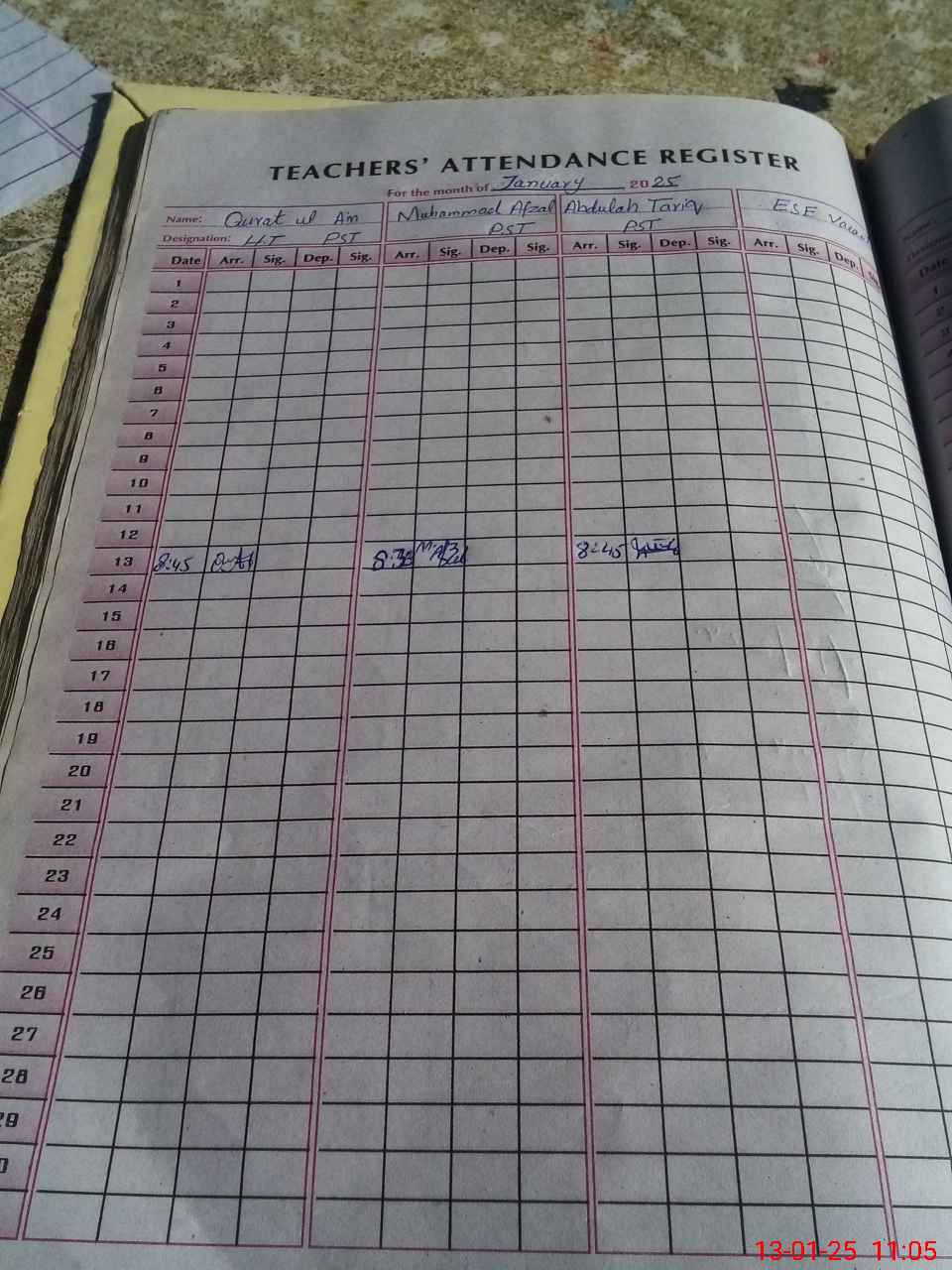 | Monitoring Date: 13-01-2025 | Start Time: 13-01-2025 10:19 AM | End Time: 13-01-2025 11:09 AM | Name of MEA: M.Is**** (S**** 03**** | |