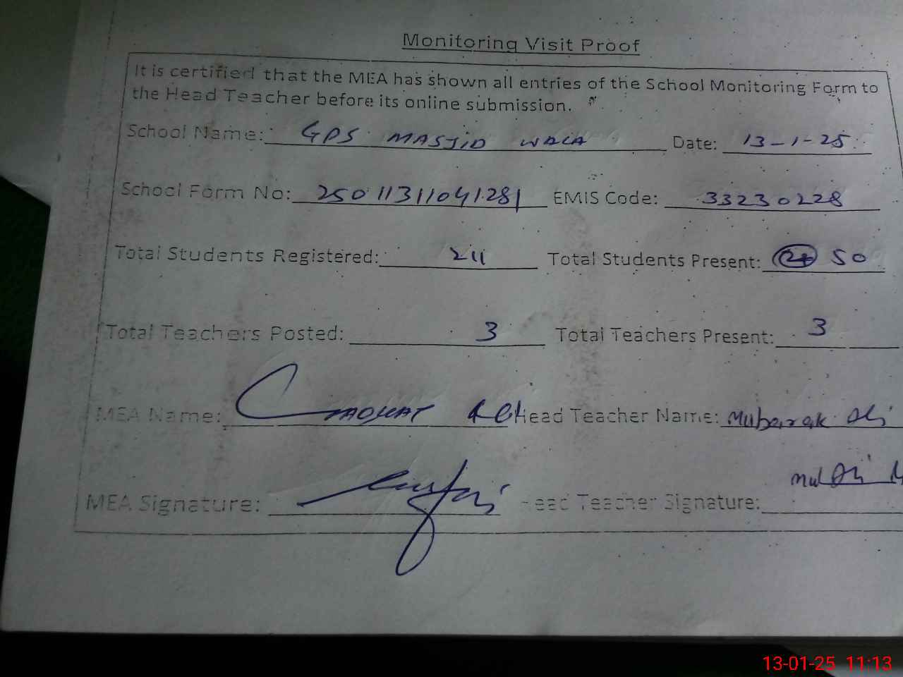 | EMIS Code: 33230228 | Name of School: GPS MASJID WALA | |||