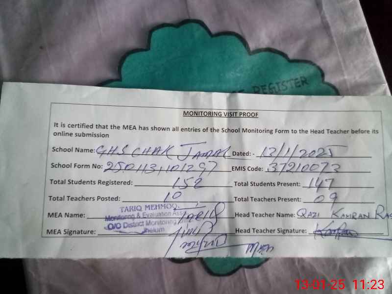 | EMIS Code: 37210073 | Name of School: GHS CHAK JAMAL | |||