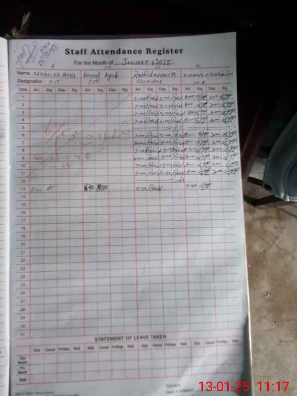 | Attendance Register | Head Teacher | MEA with School | Visit Proof |