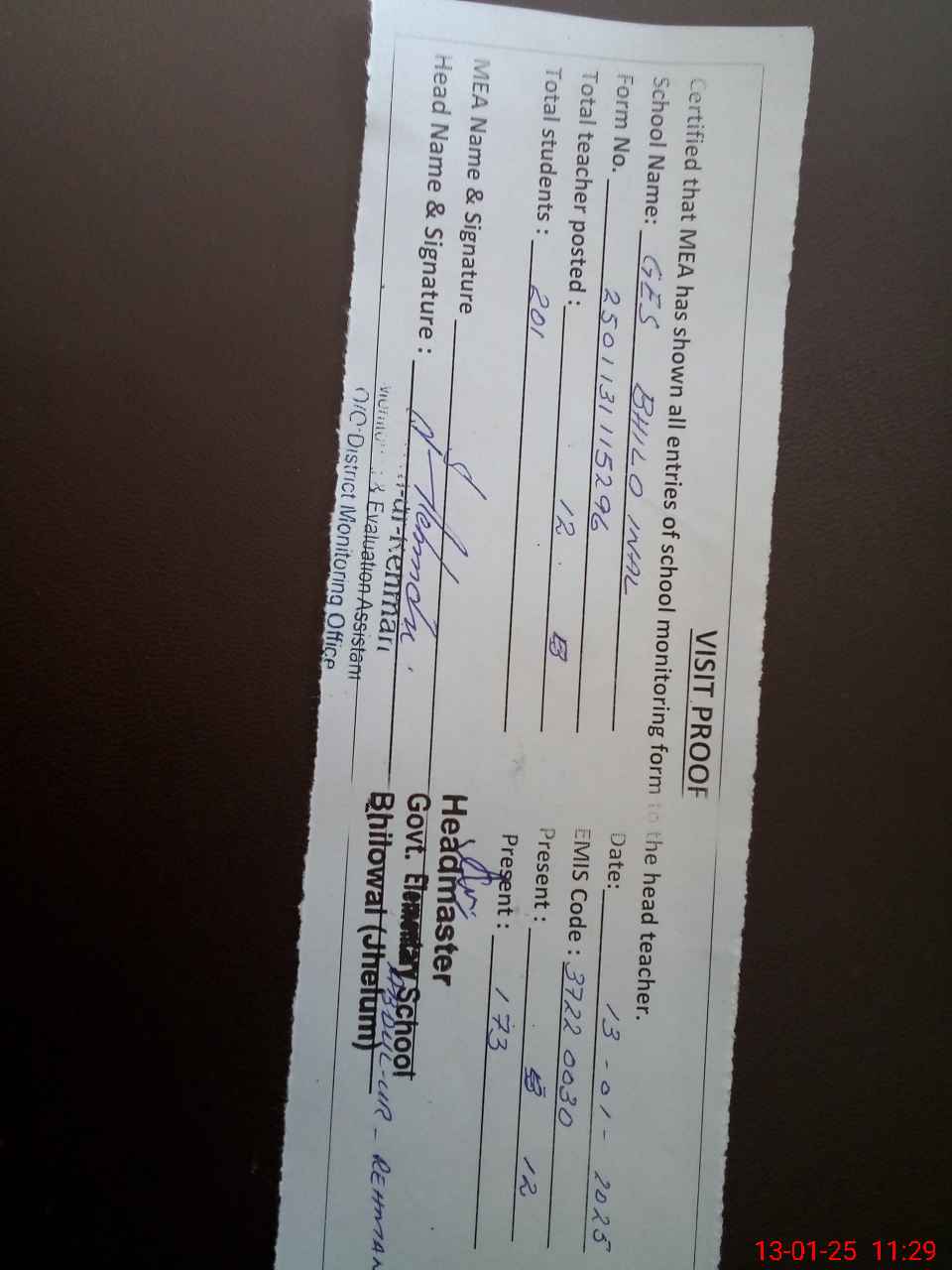 | EMIS Code: 37220030 | Name of School: GES BHILOWAL | |||