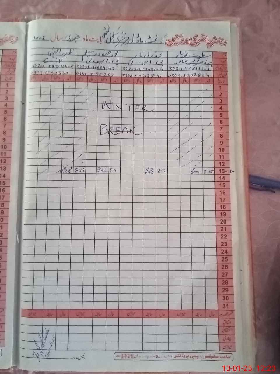 | CNIC | Full Name | Designation | R/C | Absence During Last Calender Month |