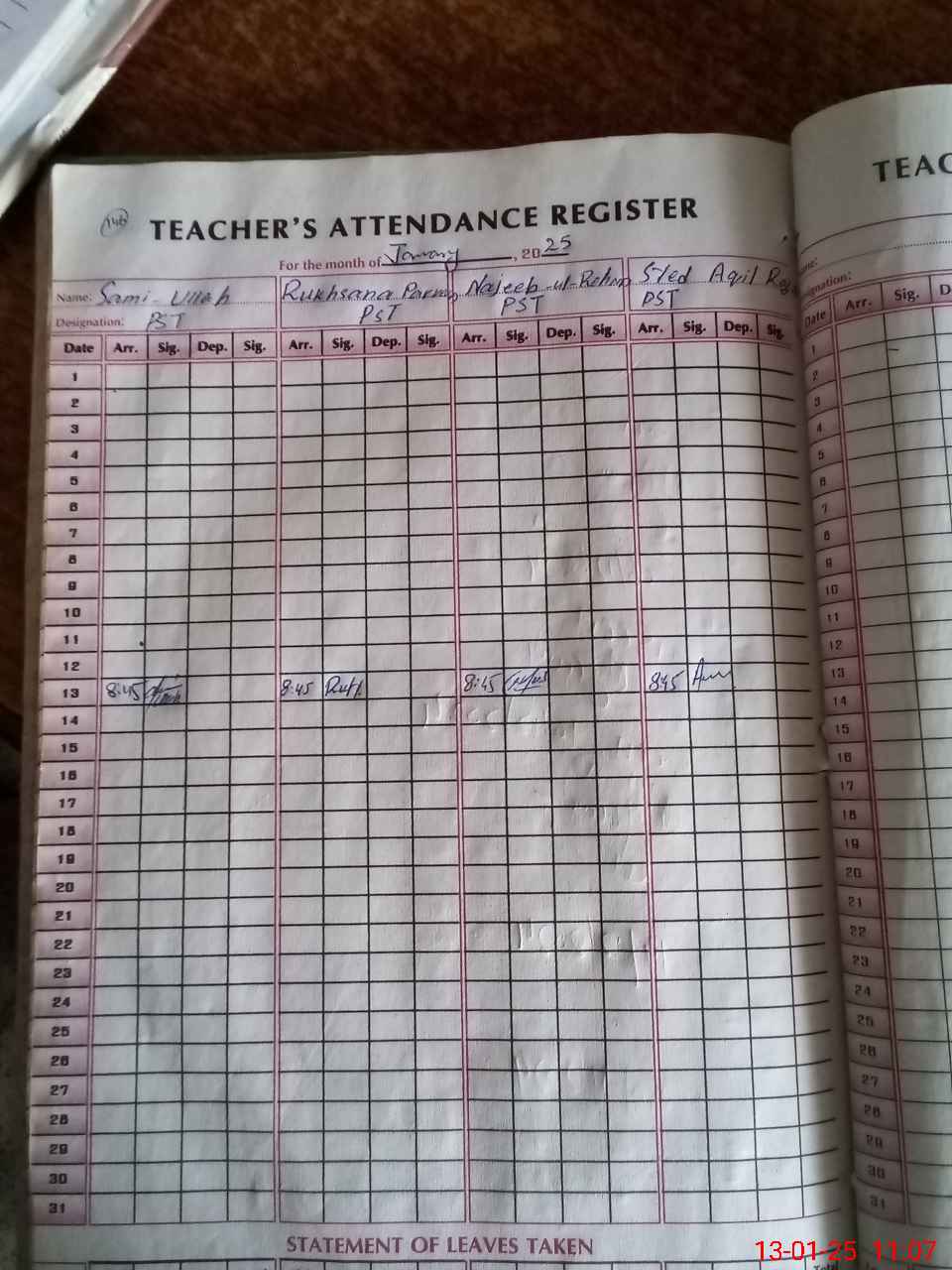 | Monitoring Date: 13-01-2025 | Start Time: 13-01-2025 10:57 AM | End Time: 13-01-2025 11:22 AM | Name of MEA: Sh**** Ah**** | |