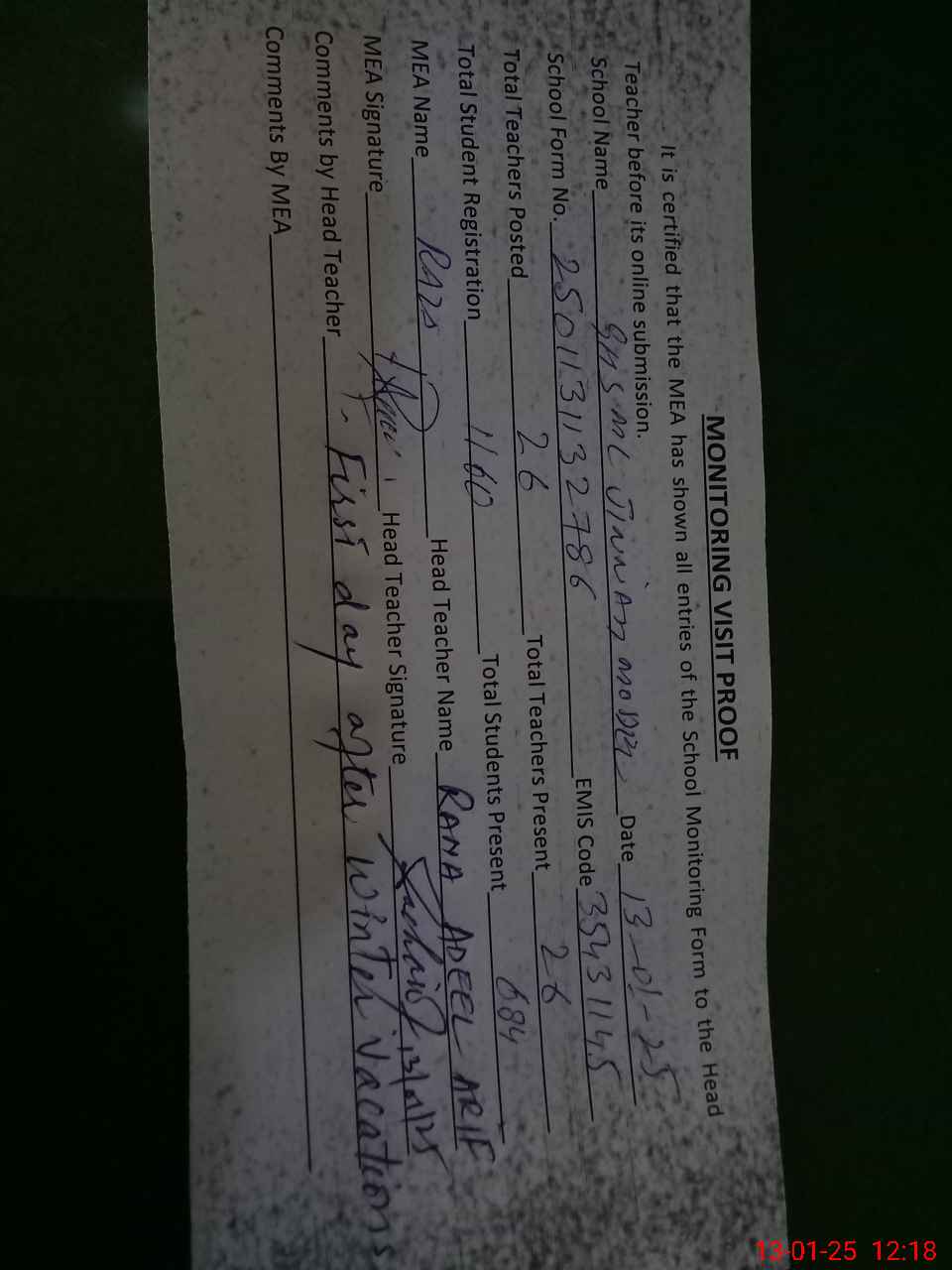 | Certified that this School was Inspected by the Undersigned MEA/DMO Today and the Information Stated Above is as Per Record. | |||||