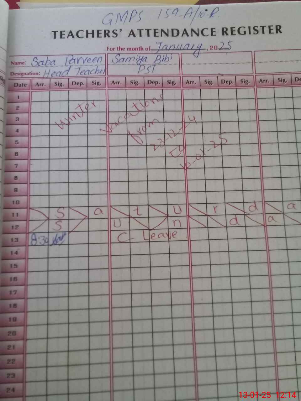 | CNIC | Full Name | Designation | R/C | Absence During Last Calender Month |