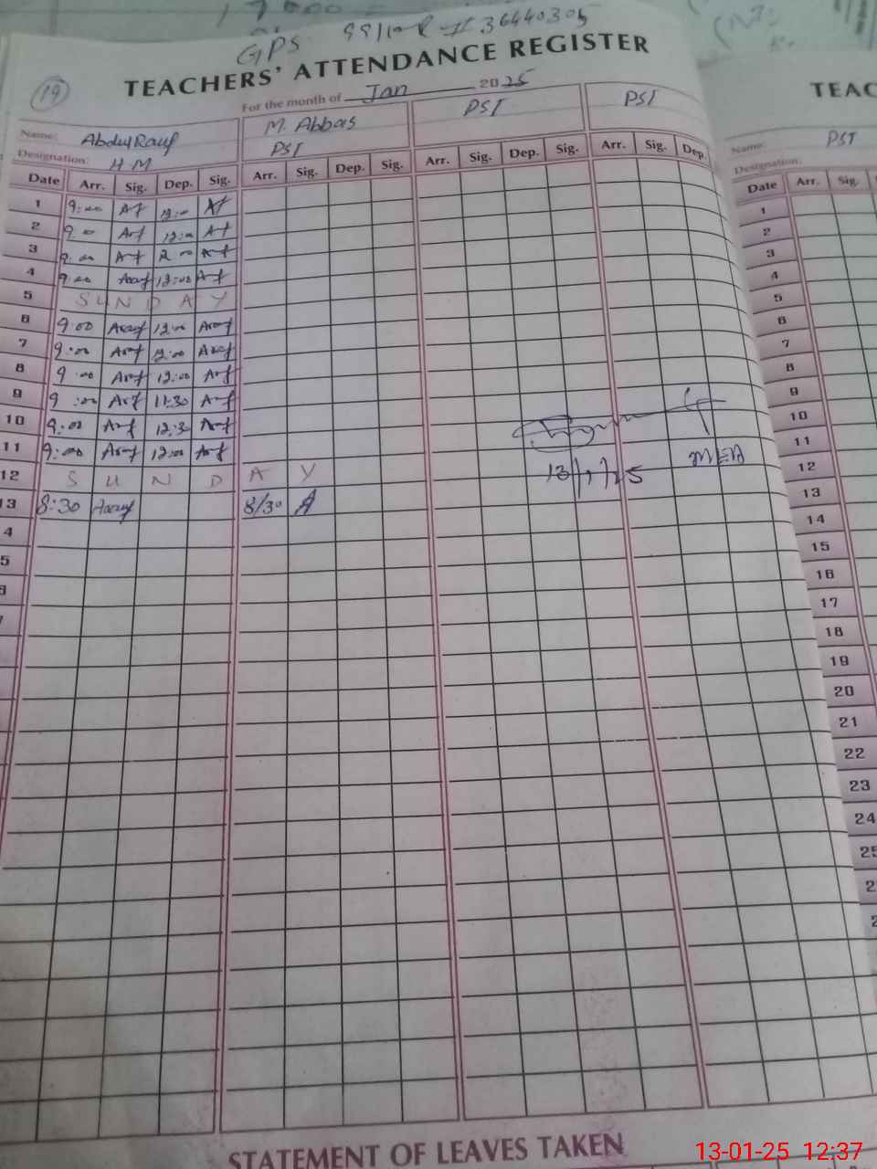 | Name: Ab**** Ra**** Designation: (School Headmaster's/Headmistress's) PST Phone/Cell Number: 03**** |