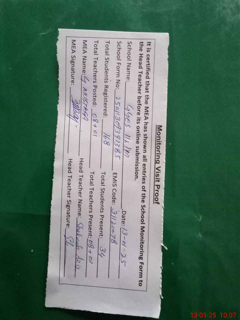 | Certified that this School was Inspected by the Undersigned MEA/DMO Today and the Information Stated Above is as Per Record. | |||||