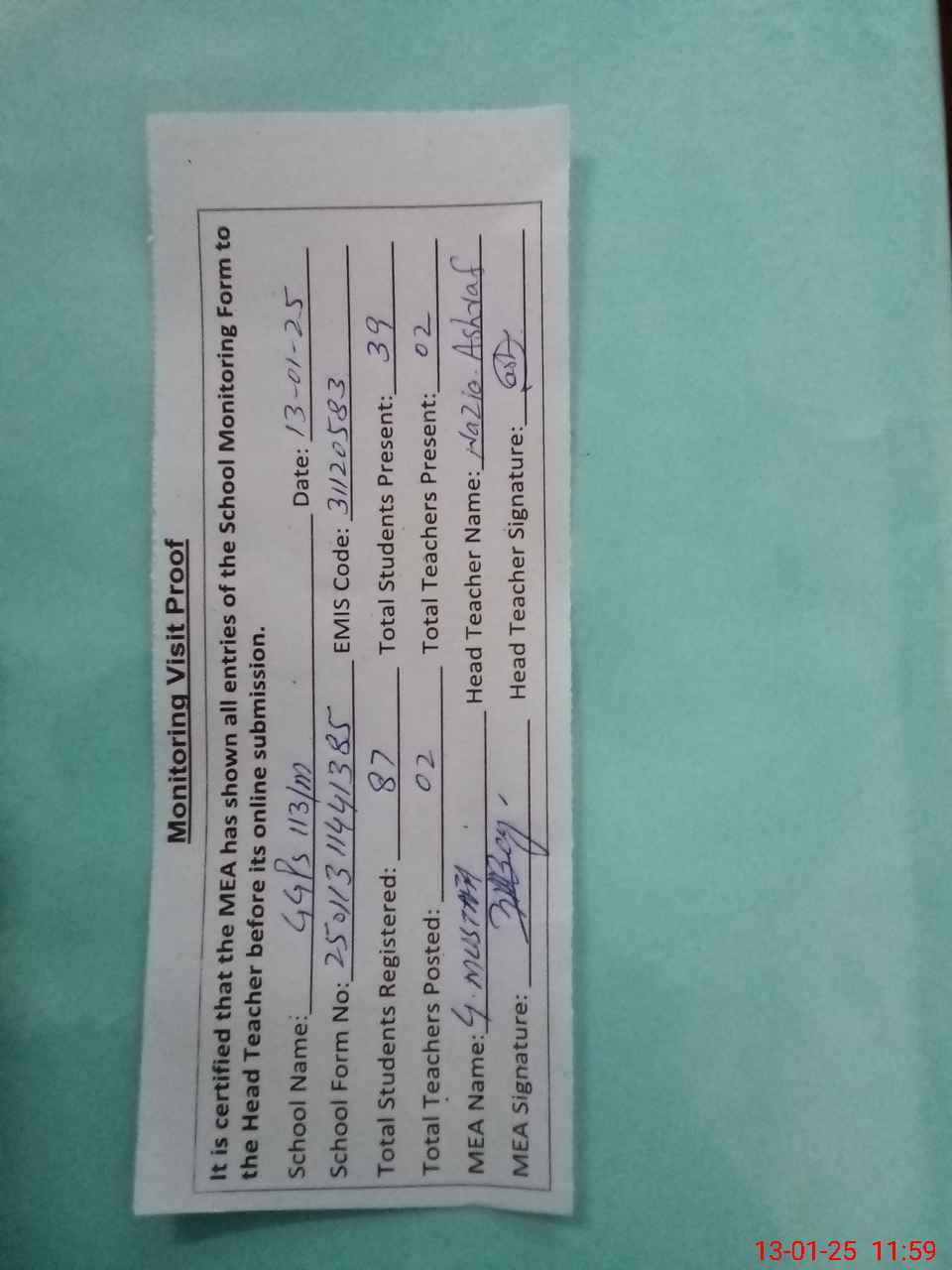 | EMIS Code: 31120583 | Name of School: GGPS CHAK NO. 113/M | |||
