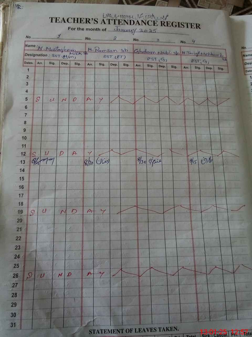 | CNIC | Full Name | Designation | R/C | Absence During Last Calender Month |