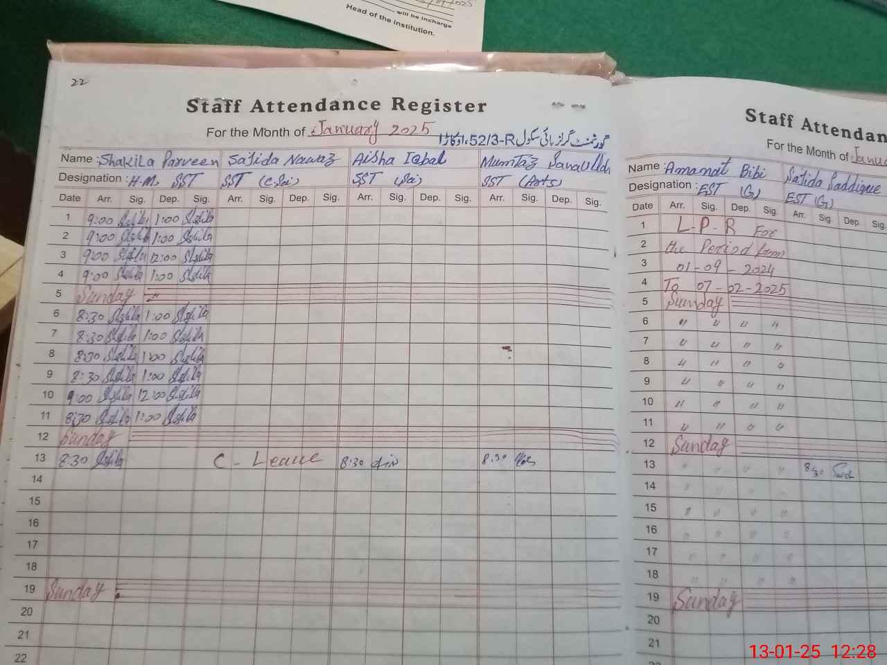 | CNIC | Full Name | Designation | R/C | Absence During Last Calender Month |