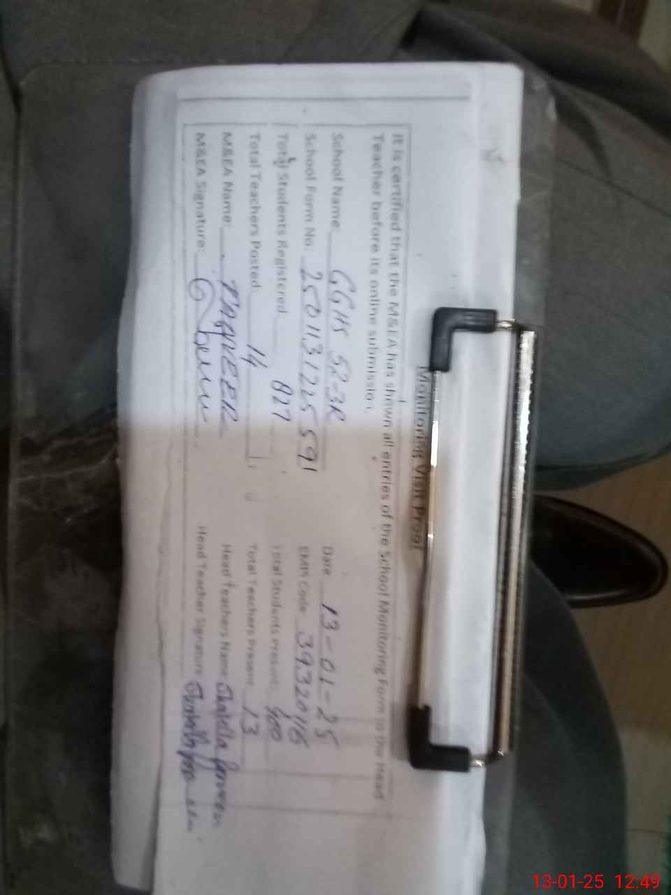 | Attendance Register | Head Teacher | MEA with School | Visit Proof |