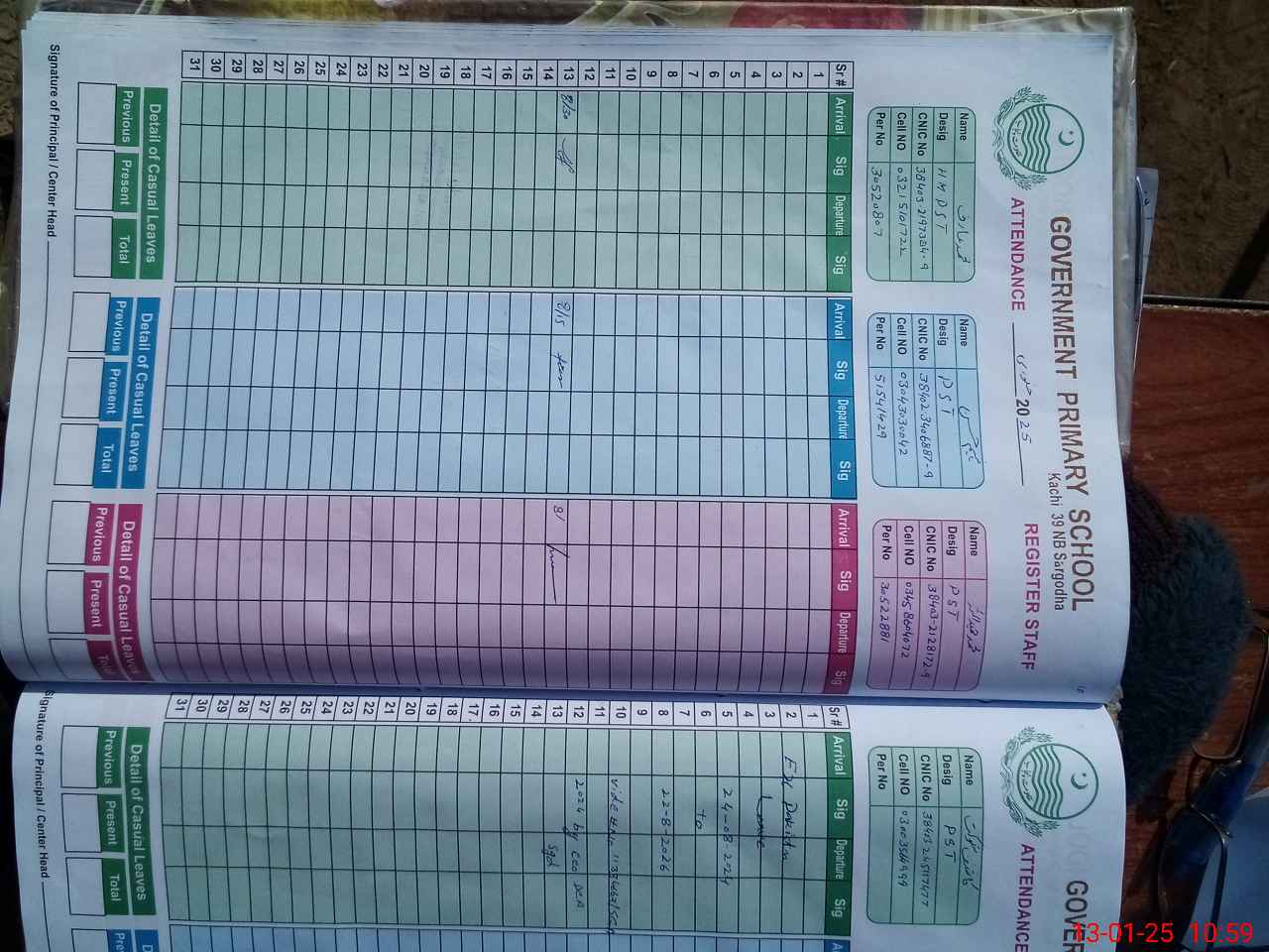 | CNIC | Full Name | Designation | R/C | Absence During Last Calender Month |
