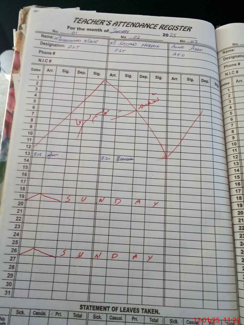 | CNIC | Full Name | Designation | R/C | Absence During Last Calender Month |