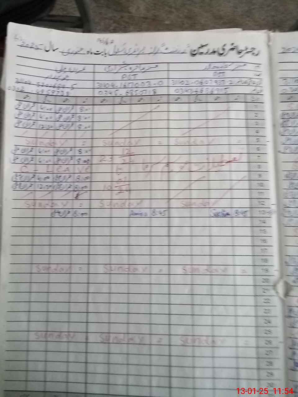 | CNIC | Full Name | Designation | R/C | Absence During Last Calender Month |