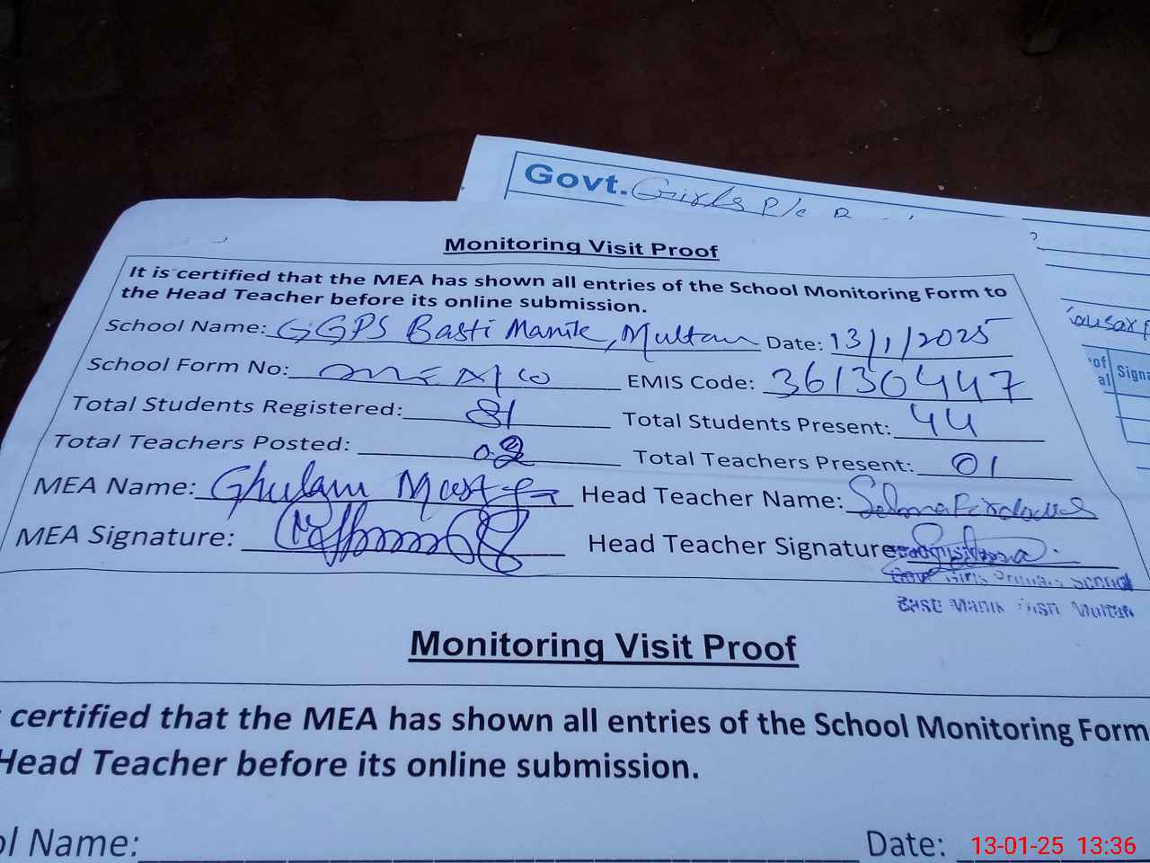 | EMIS Code: 36130447 | Name of School: GGPS BASTI MANAK MOUZA DAR WALA MULTAN | |||