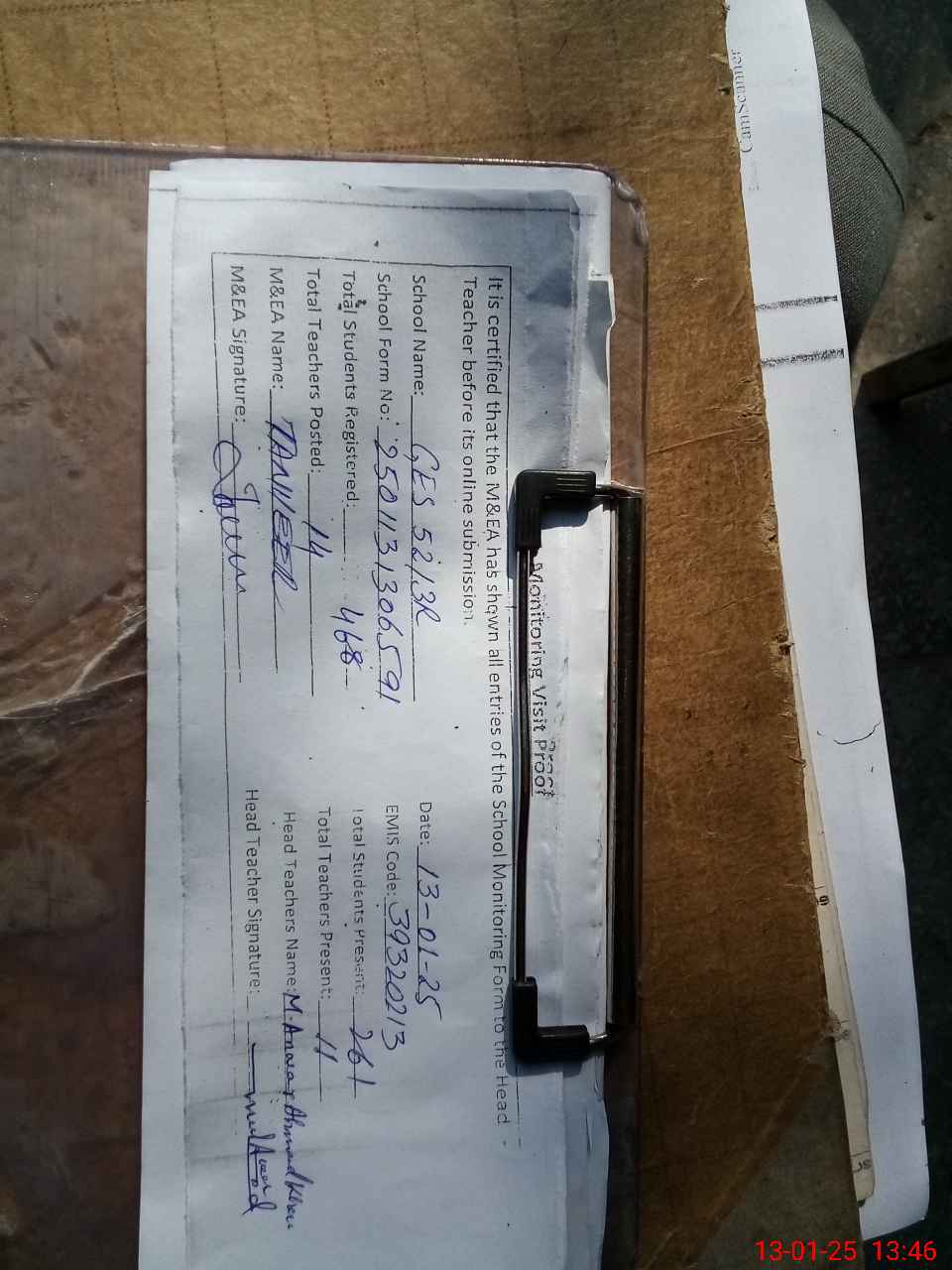 | Attendance Register | Head Teacher | MEA with School | Visit Proof |