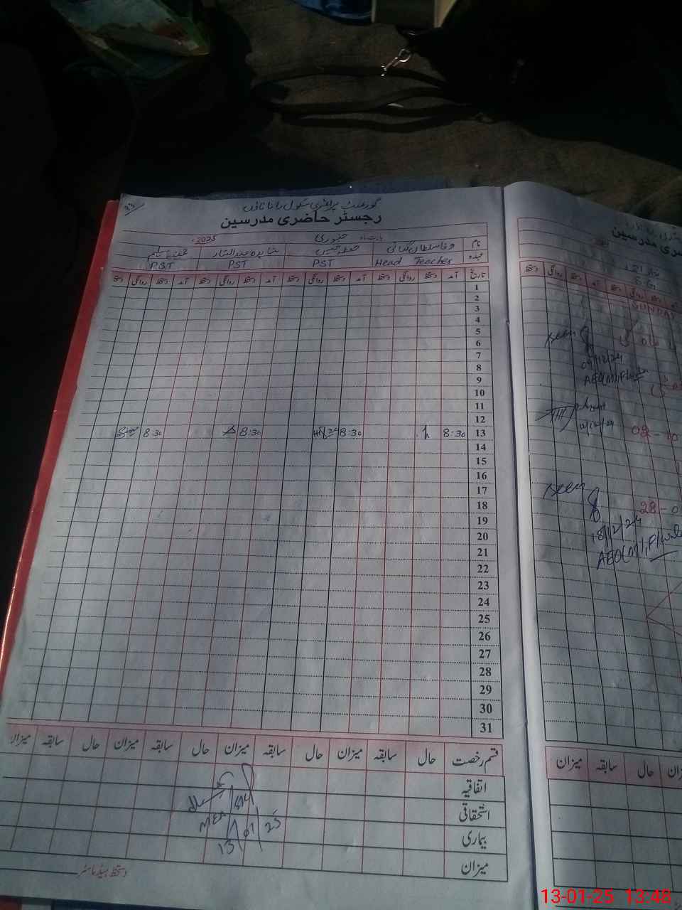 | CNIC | Full Name | Designation | R/C | Absence During Last Calender Month |