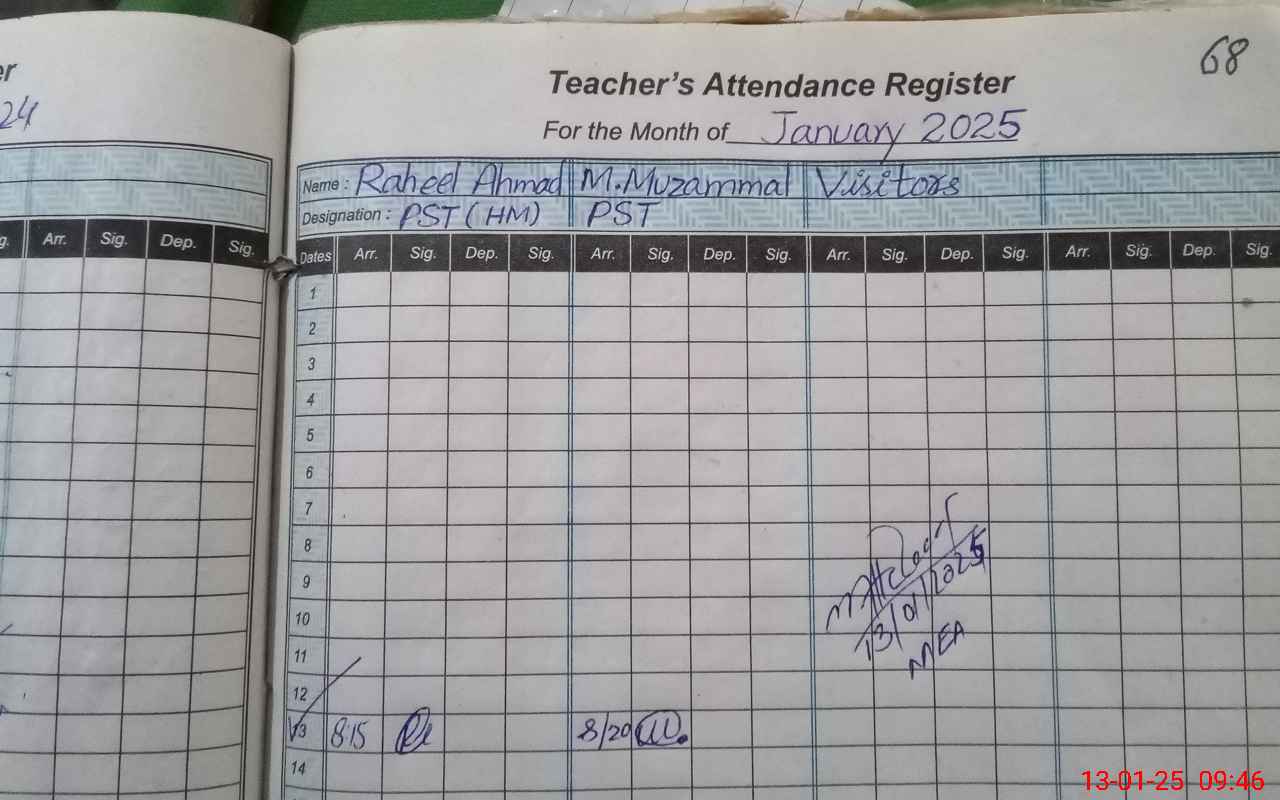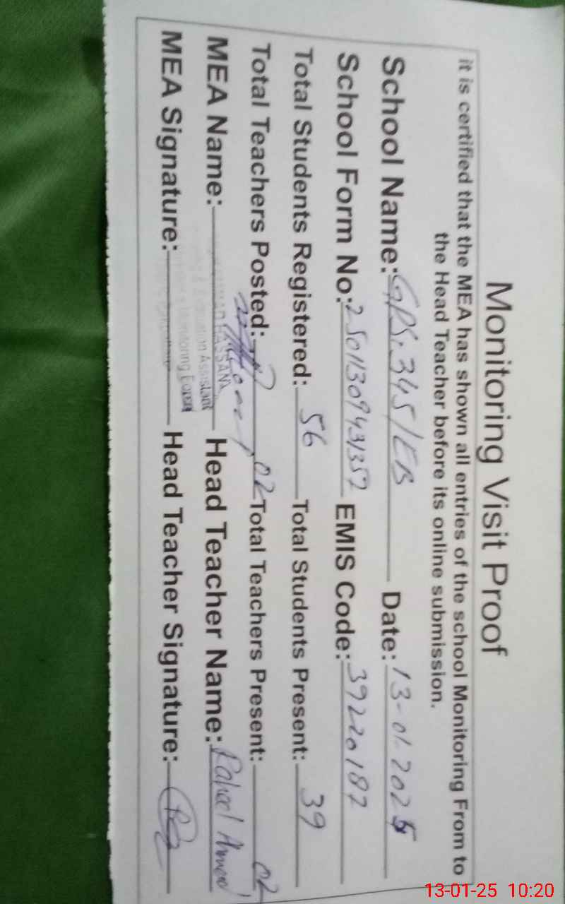 | Attendance Register | Head Teacher | MEA with School | Visit Proof |