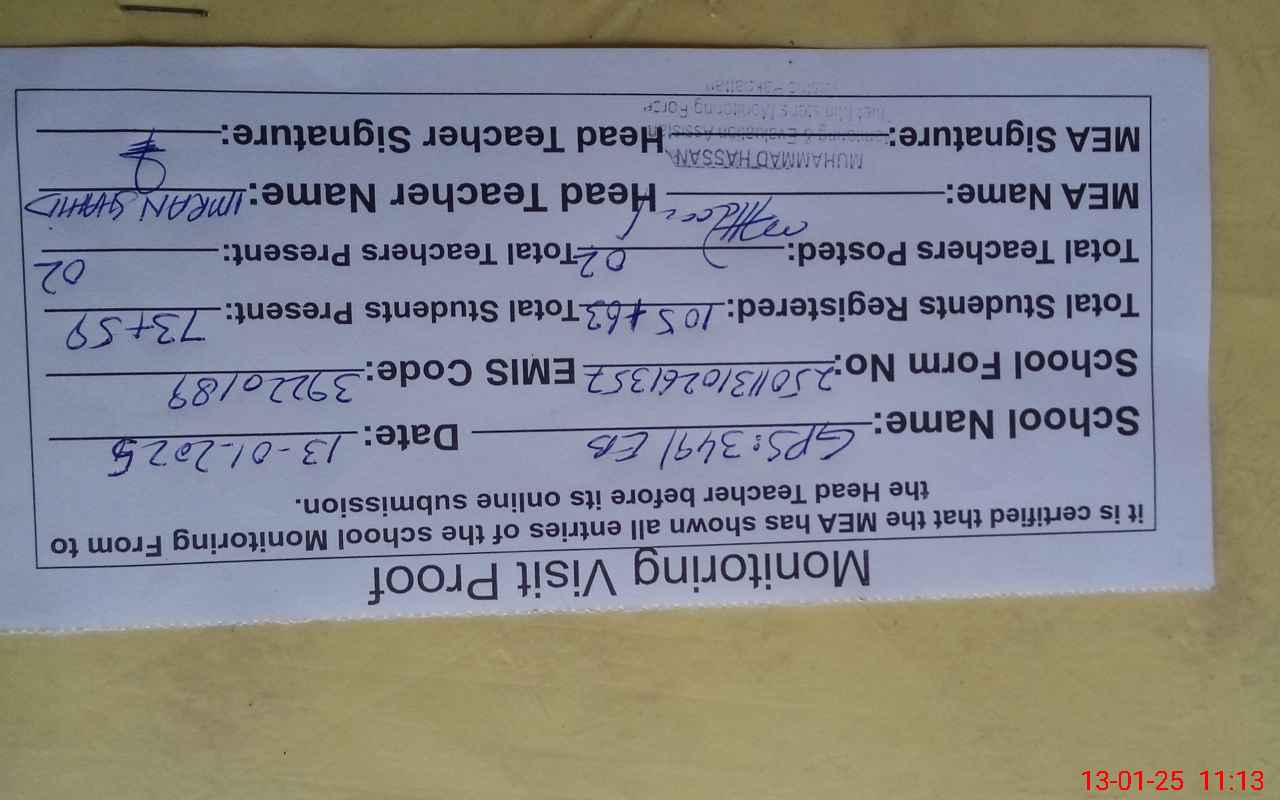 | Name: IM**** SH**** Designation: (School Headmaster's/Headmistress's) PST Phone/Cell Number: 03**** |