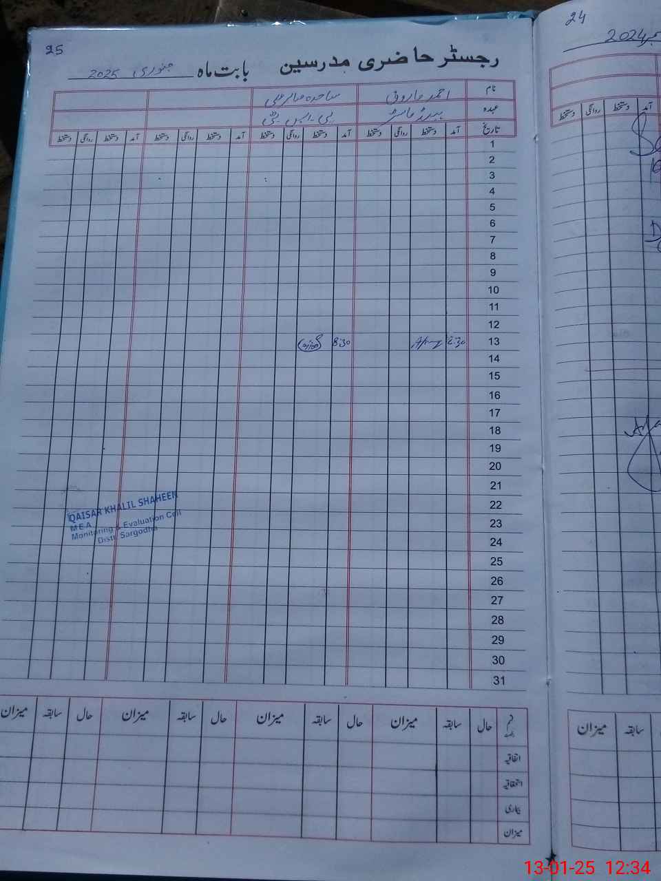 | Monitoring Date: 13-01-2025 | Start Time: 13-01-2025 12:23 PM | End Time: 13-01-2025 12:50 PM | Name of MEA: QA**** KH**** SH**** | |