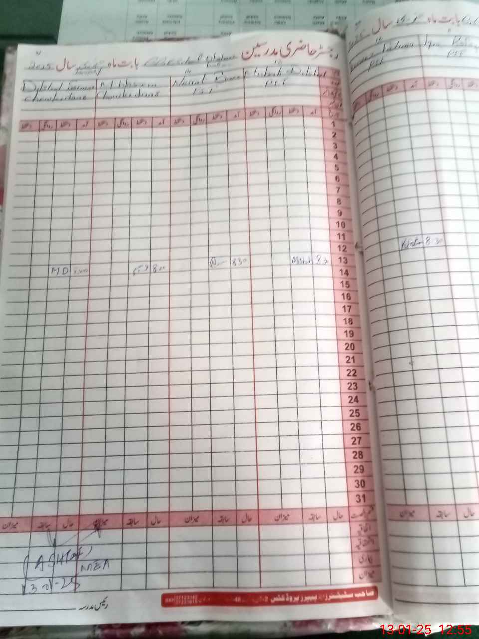 | CNIC | Full Name | Designation | R/C | Absence During Last Calender Month |