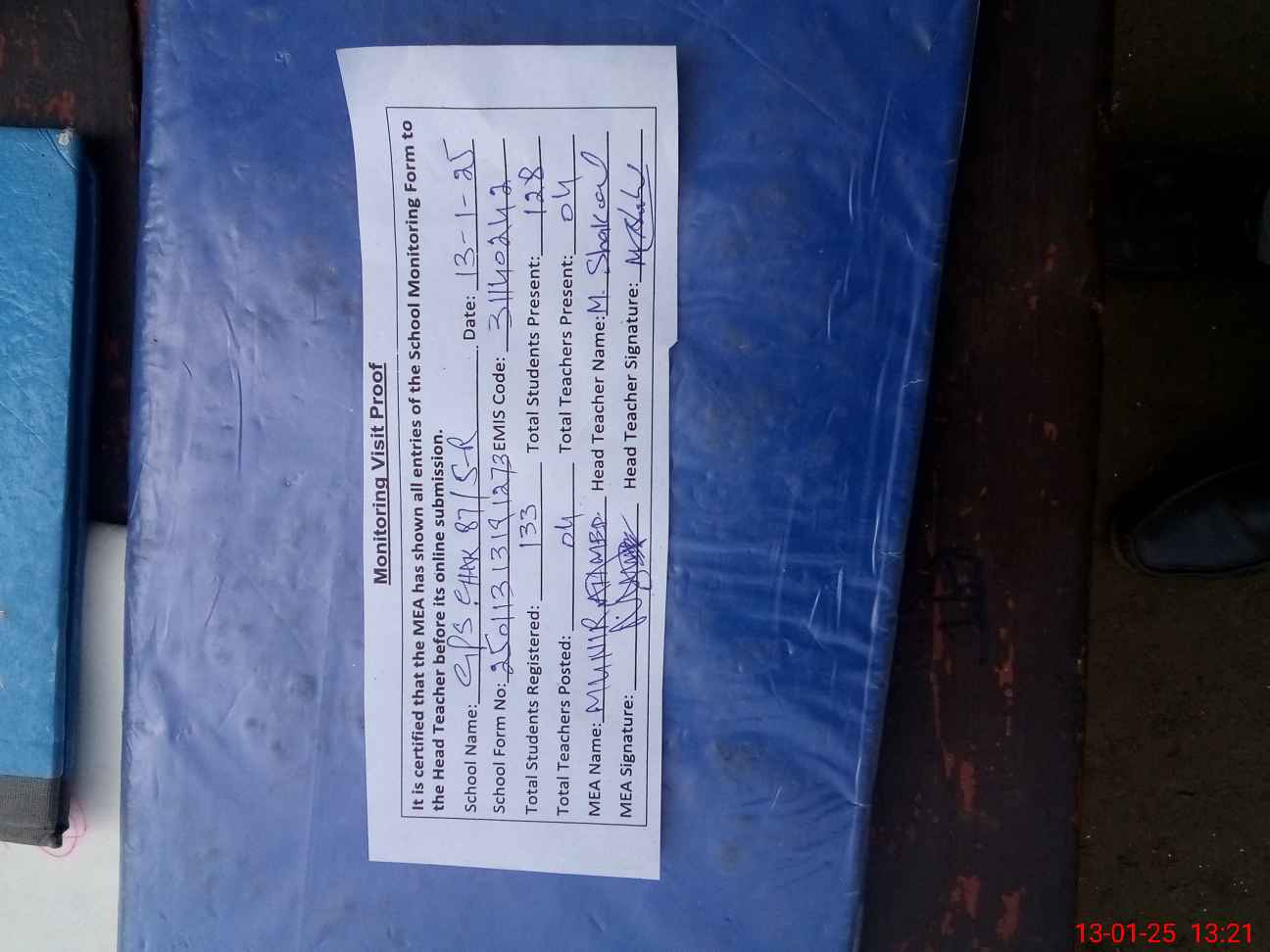 | Attendance Register | Head Teacher | MEA with School | Visit Proof |
