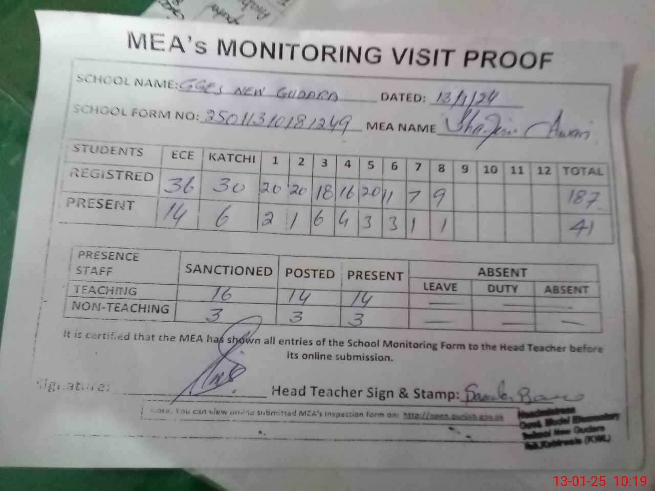 | EMIS Code: 36410342 | Name of School: GGES NEW GUDARA, KABIRWALA | |||