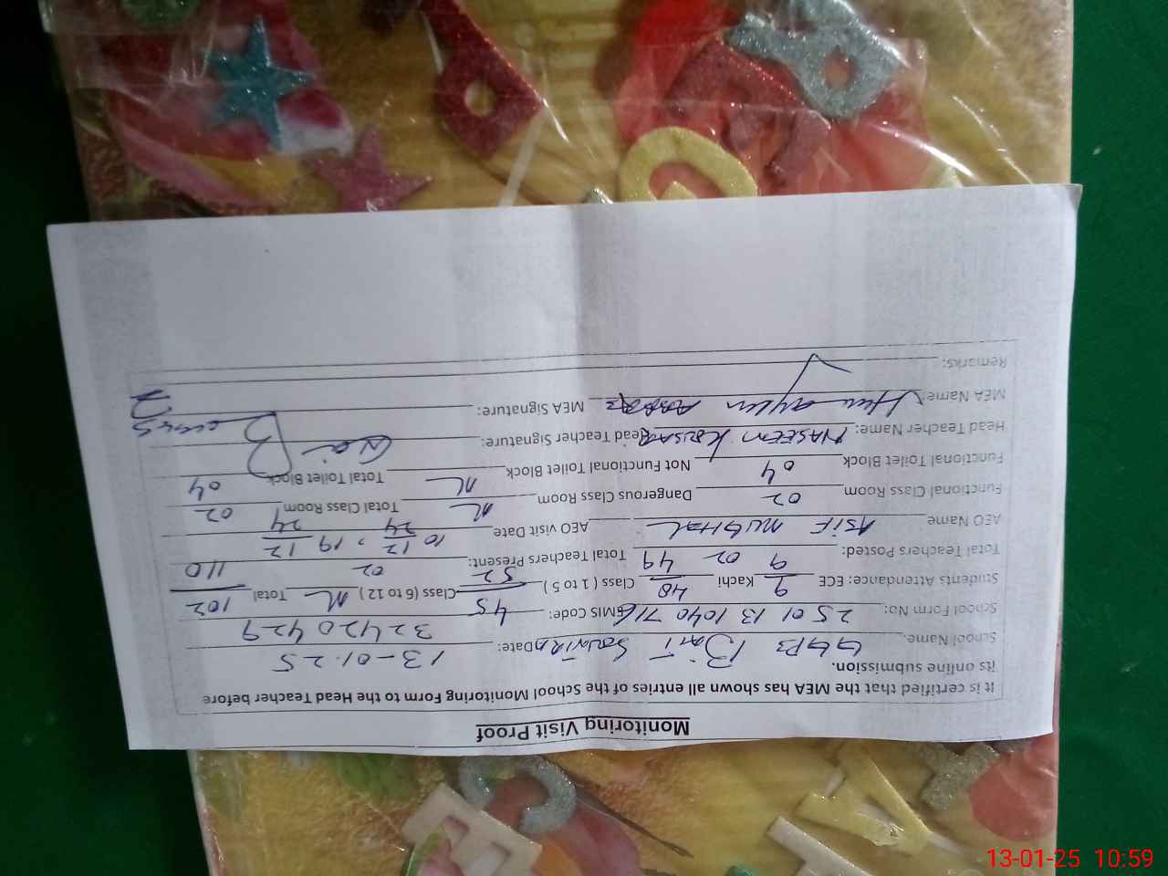 | Attendance Register | Head Teacher | MEA with School | Visit Proof |