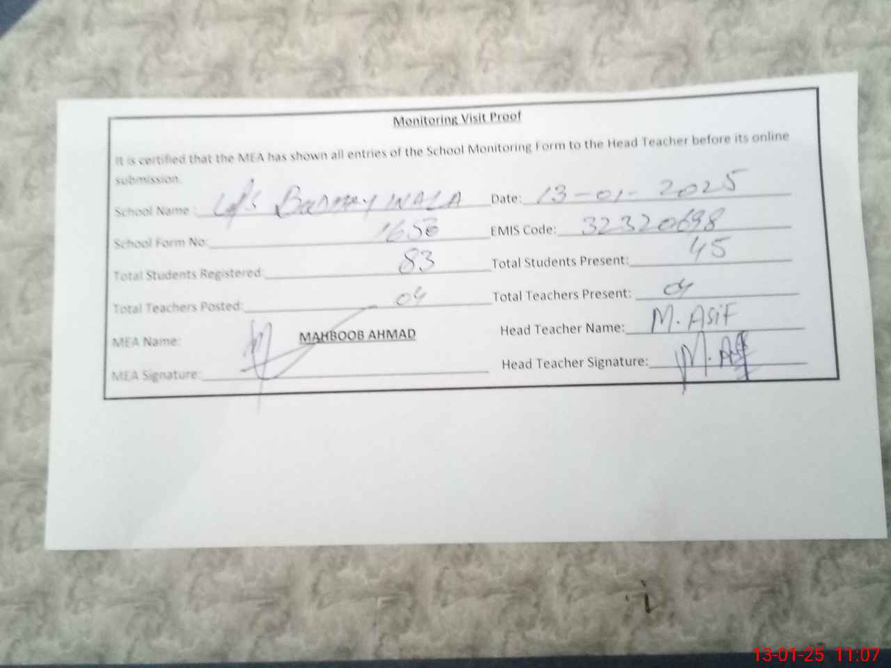 | Name: Mu**** As**** Designation: (School Headmaster's/Headmistress's) PST Phone/Cell Number: 03**** |