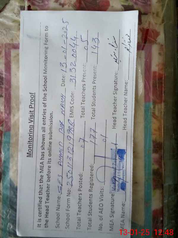 | Certified that this School was Inspected by the Undersigned MEA/DMO Today and the Information Stated Above is as Per Record. | |||||
