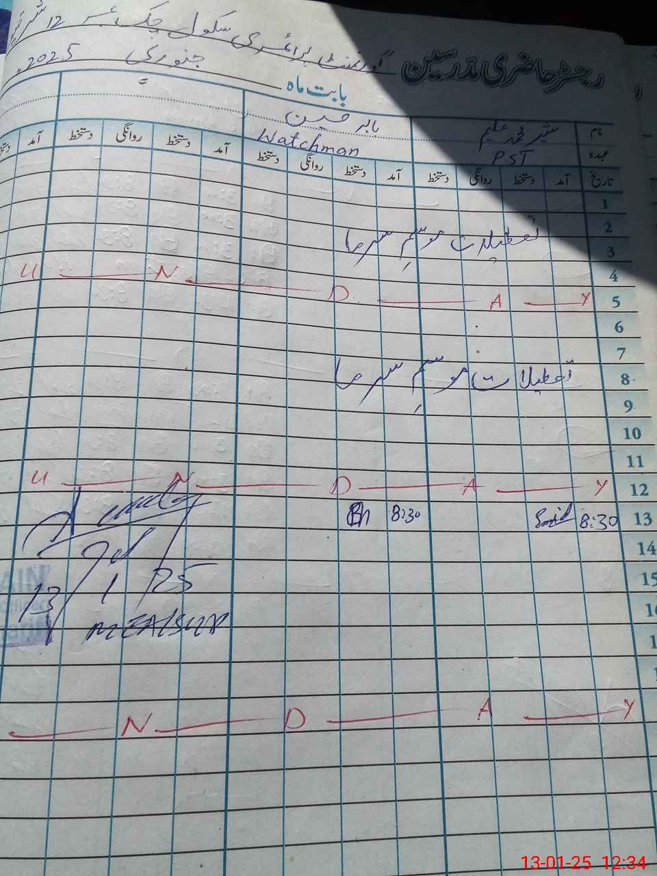 | CNIC | Full Name | Designation | R/C | Absence During Last Calender Month |