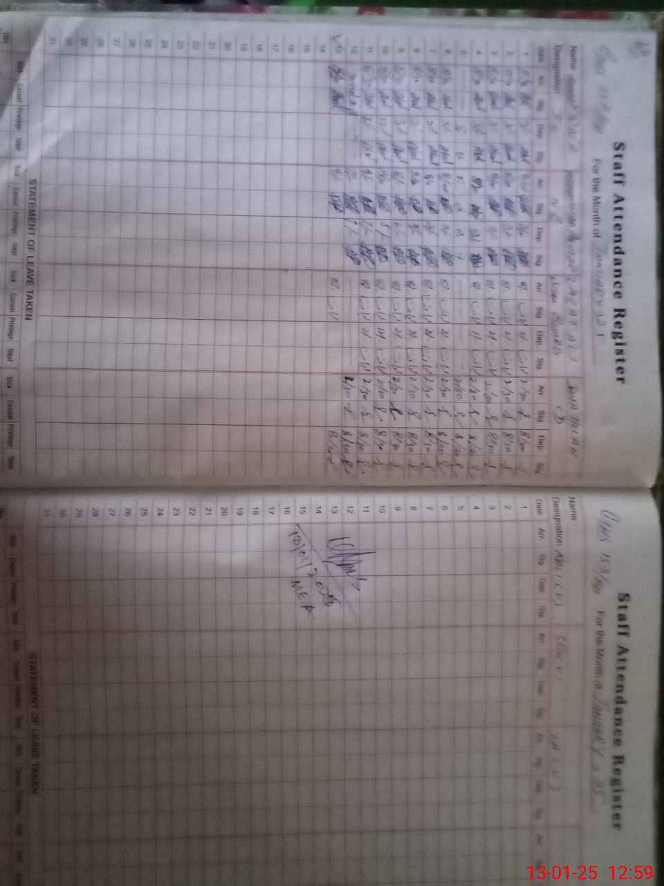 | CNIC | Full Name | Designation | R/C | Absence During Last Calender Month |