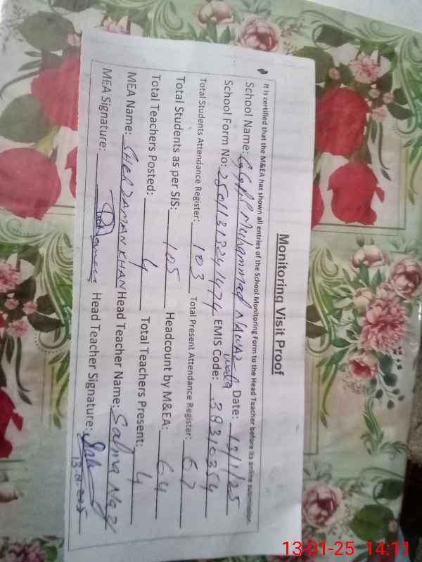 | EMIS Code: 38310354 | Name of School: GGPS MUHAMMAD NAWAZ WALA | |||