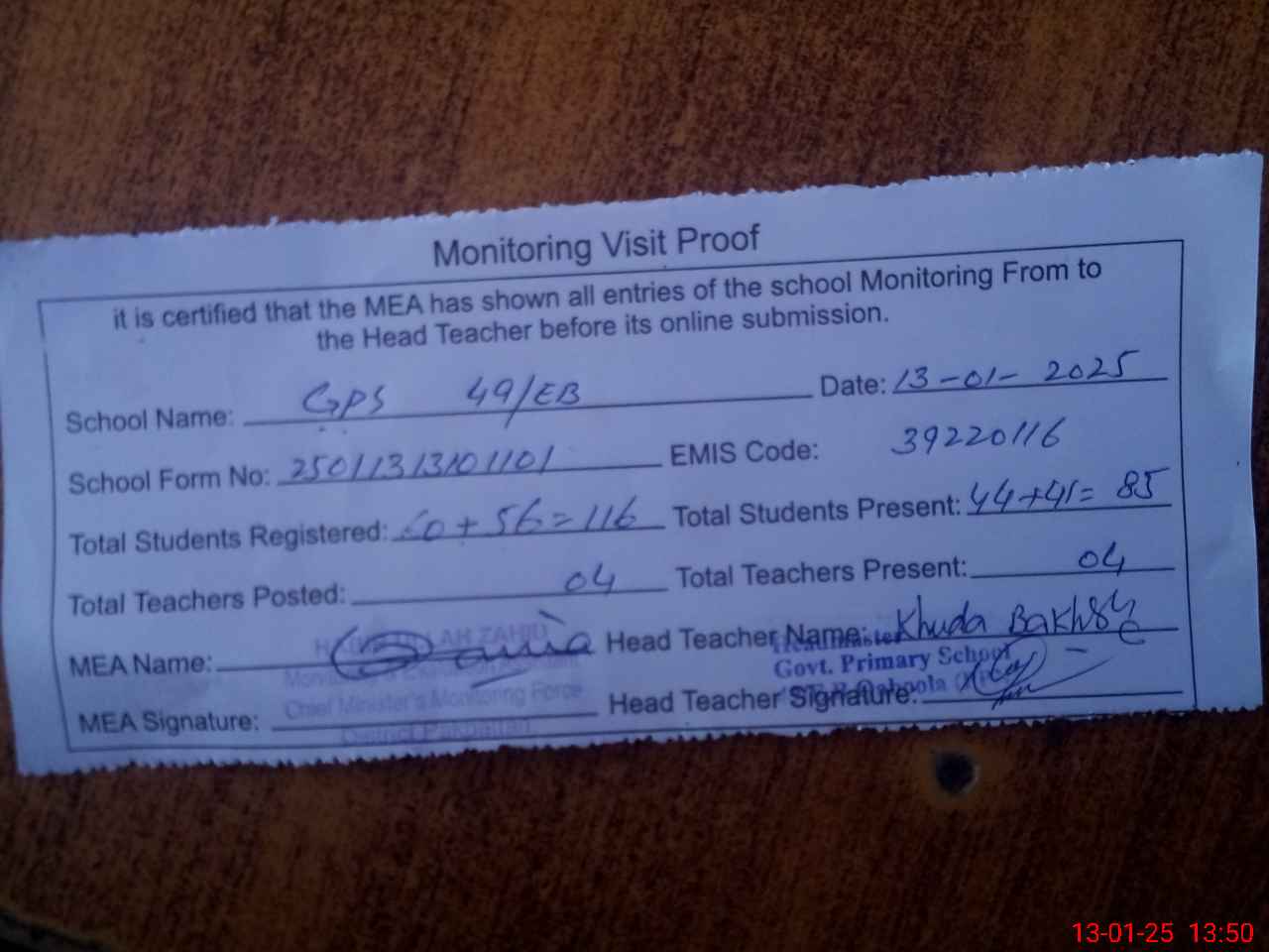 | EMIS Code: 39220116 | Name of School: GPS 49 EB | |||