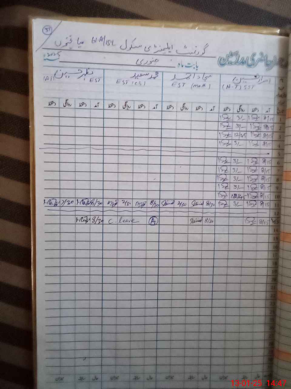 | Remarks (Use Separate Page if Required): NSB GRANTS AND FTF RECORDS ARE NOT AVAILABLE MUHAMMAD SAEED EST CS FOUND UN AUTHORISED ABSENT FROM DUTY HIS CASUAL LEAVE IS APPLIED ON SIS ON 13 JANUARY 2025 AT 13 23 17 PM AND APPROVED AT 13 56 59 PM AFTER THE ARRIVAL OF MEA WASH CLUB RECORDS UPTO 04 OCTOBER 2021 IS WRITTEN AFTER THIS NO ENTRY LESSON PLANS ARE NOT AVAILABLE RANDOM CLASS ONE IS NOW IN CLASS FOUR | |||||