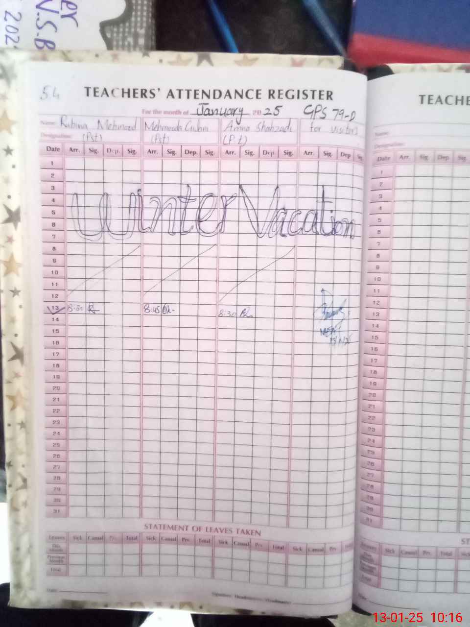 | Leave | Duty | Absent | Maternity | Medical | Ex- Pak |