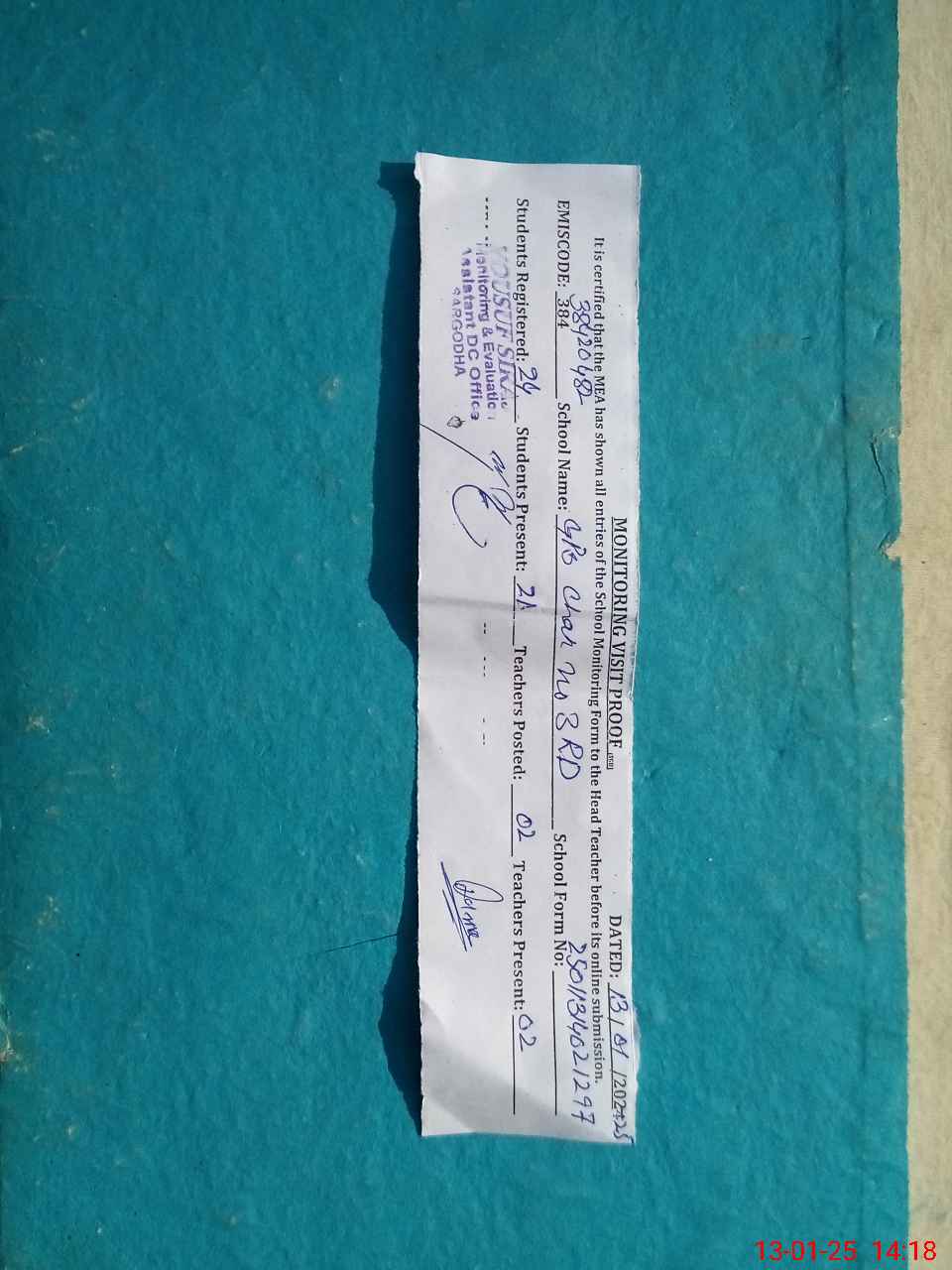 | Attendance Register | Head Teacher | MEA with School | Visit Proof |