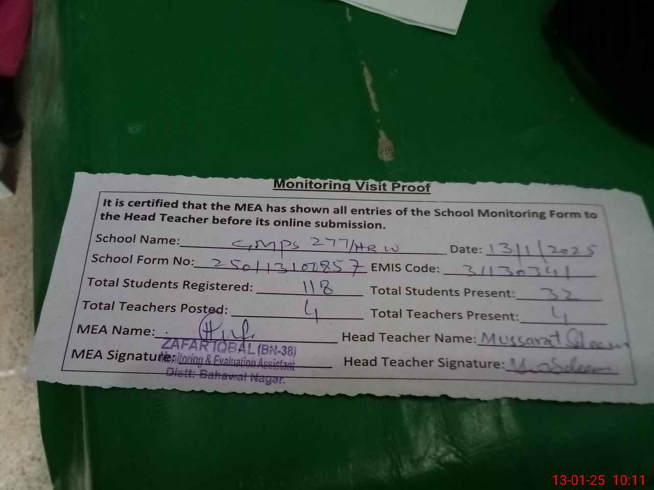 | EMIS Code: 31130341 | Name of School: GMPS CHAK NO 277 HR W | |||
